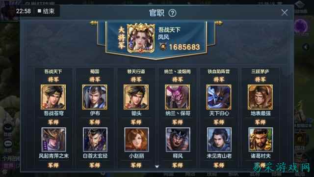 在大地图上有魏蜀吴乱以及幕府的NPC阵营,每个阵营可以容纳无数个玩家同盟,在这里游戏更加强调军团策略,大V玩家也难以在游戏中以一敌百,他们最多能够做到的就是作为同盟的核心力量带领指挥整个同盟齐心战斗。游戏中通过官职系统让所有的玩家同盟能够联合起来合力对抗外敌。