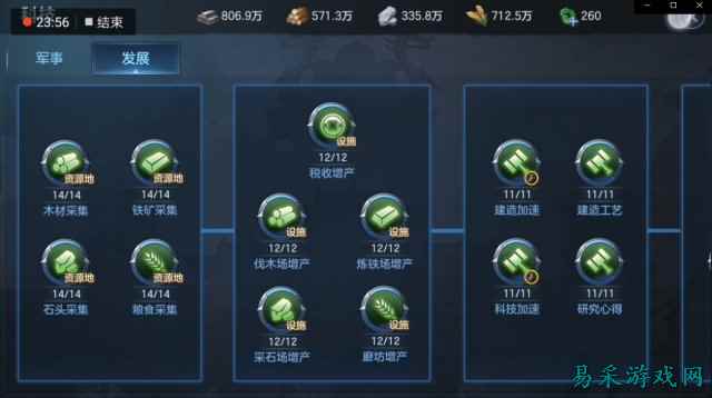 在《九州劫》中自然少不了SLG中的城建、攀升科技的玩法,不用多说,这个阶段玩家的主要内容玩法均是通过大量积累金币、建材资源,并耗费大量的时间来完成主城的建设。不过在技能方面,游戏则需要耗费大量的武将卡,用于解锁各种各样兵种相对应的技能及属性加成。