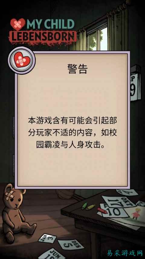 故事并没有在一开始就急着控诉。 当孩子开始上学,气氛渐渐变得诡谪起来。校园就像这个充满仇恨与敌意的社会的缩影,你眼睁睁看着孩子被辱骂、被殴打、被排挤,抚养孩子逐渐变成一件越来越充满无力感的事情——战争胜利了,仇恨仍然没有休止;时代的错误,却让弱小的该子来承担,无处控诉也无力反抗。 游戏是按照天为单位进行的,每一天都有固定的时间单位,您需要合理分配您的时间与资源,在你为孩子张罗衣食起居的同时,你也要敏锐地照顾孩子的情绪世界,可能还要花时间去了解孩子的过去,帮助孩子面对人生。
