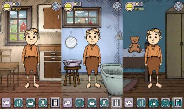 一共两个孩子,每个孩子又有不同的发展路线,让游戏的耐玩性成倍数上升——只要你的心脏足够强大、能承受这一万吨悲伤的话。 故事的一开始很美好,你喂ta吃饭,为ta擦脸洗澡,给ta说睡前故事,努力满足孩子的三个指标(饱食度、清洁度、愉悦度),一切都像是一个正常家庭该有的样子。虽然家里穷得连个鸡蛋都买不起,但是像是有美好的未来在前面招手,家里的气氛也和谐温馨。