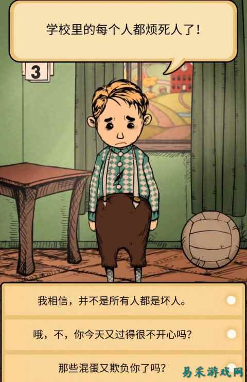加还是不加?这是个问题。 玩家的选择将会产生不同的结果,每一次做出选择,孩子都会通过表情和肢体语言来表达感受,系统也会反馈以不一样的音效,反馈感特别强烈;时间一久,孩子就有可能产生不同的人格和世界观。但有一点是无法改变的:无论孩子的心肠是软是硬,对周遭的世界是充满童真热情地去拥抱还是像大人一般冷眼看待,对他人的鄙夷是坚强地面对还是软弱地忍受,都无法驱散那些恶意的侧目与唾沫,也无法改变之后受到持续甚至更严重的欺凌的事实。