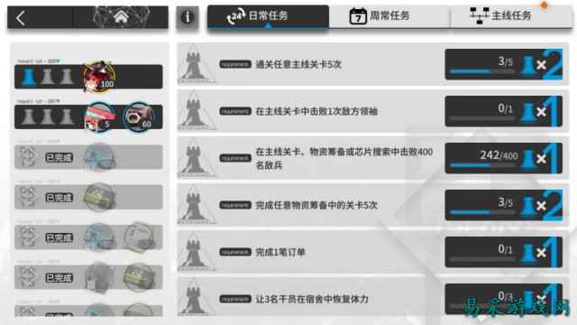 基建系统虽然可以自产一些资源,甚至是氪金货币,但开启全部生产配方前,作用还是太小 同样举个例子来看,干员升级不仅需要消耗作战记录,还需要花钱。而作战记录与钱这两项资源均需要玩家反复刷副本或是完成各项任务来获得。而提升巨大的精英化则需要用到数种独立的升级素材,星级越高消耗的种类与数量也就越多,这些资源一样需要花费大量时间与资源去获取。搭配游戏的体力限制,极大的延长了单一角色养成所需要的时间与精力。然而玩家想要顺利通关,至少需要培养十二人以上,换而言之,肝吧。