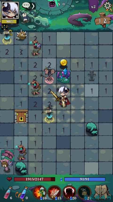 说起Roguelike大家应该会想到《不思议迷宫》、《贪婪洞窟》这类的游戏。而《穿越雷区》采用了类似《不思议迷宫》的翻砖块玩法,不同的是游戏将敌人作为地雷埋在砖块之下,玩家可以根据地板上的数字判断出哪个方块下面隐藏着敌人,甚至于你还能够长按标记出对应的敌人,并将它周围的方块全部点开,敌人就现出真身了。