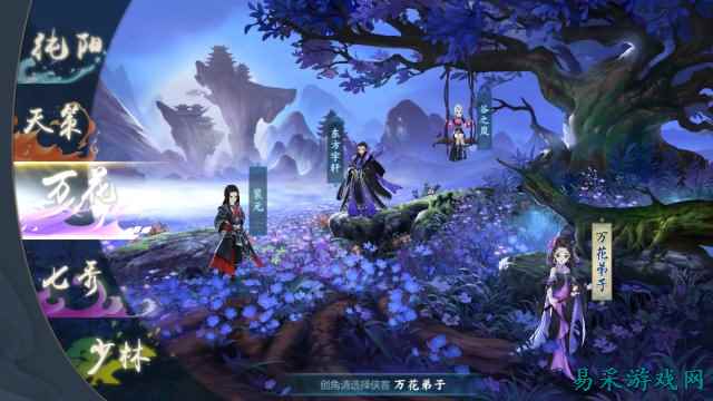 游戏为玩家提供了天策、纯阳、万花、七秀以及少林五大门派进行选择,每个门派都有着自己独特的剧情故事线。从进游戏到30级的任务过程就是一个连贯的单人体验剧情。