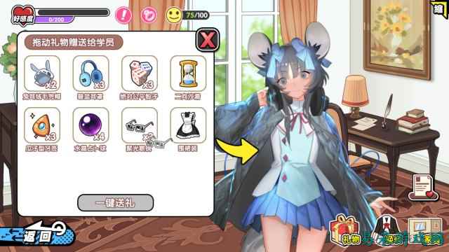 而从单纯的喜好上来说,本作真正的主打内容就是“宿舍”了。在宿舍当中,玩家可以为喜欢的小姐姐换装、布置家具、赠送礼物,同时如果赠送了小姐姐最喜欢的礼物、好感度达到一定等级以后,还会出现专属的支线剧情任务,进一步与心仪的小姐姐进行互动,观看CG,聆听软软糯糯的CV。