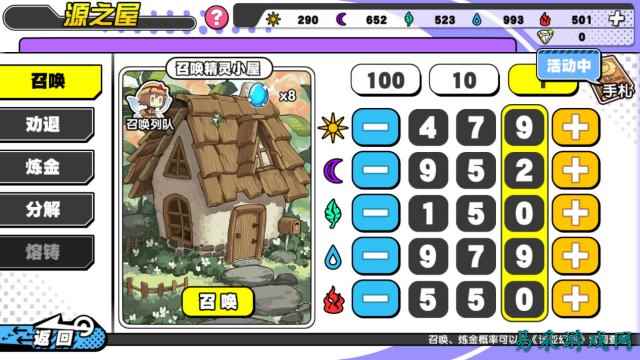 游戏的核心玩法依旧是小姐姐的养成,也就是“学员”的培养。在学院建筑“源之屋”中,玩家需要通过光暗草水火五种材料,经过数量调配进行学员召唤和魔力石打造,这种配方召唤模式是日系游戏比较流行的一种方式,也是比较公平的一种抽卡方式。对不需要的学员和魔力石还可以进行分解回收材料。