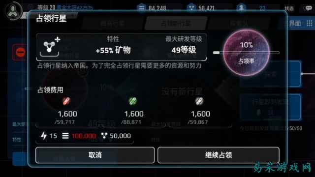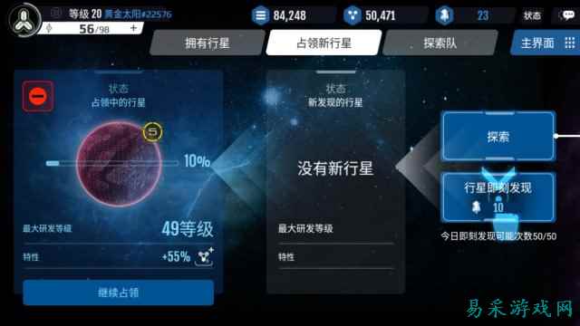 达到20级后玩家可以派出探索队探索新的行星,通过消耗各种资源对行星进行占领,占领完成后安排英雄作为执政长官,然后就可以开始培养了。