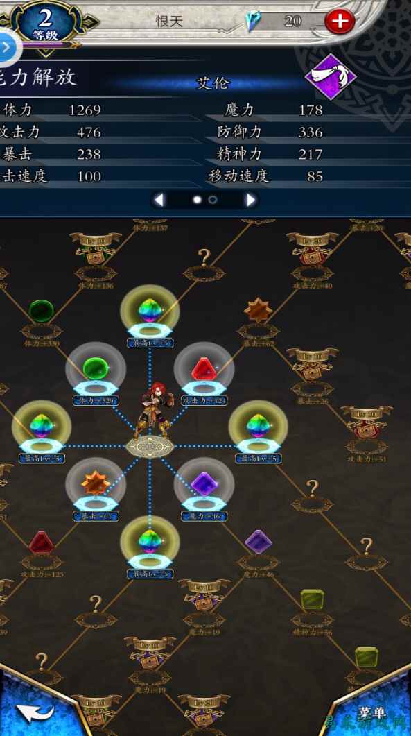 相比于没什么特点的职业设定,本作的养成机制还算有点特别。除了抽卡之外,还有装备的强化和进化,以及人物能力的解放。抽卡和装备养成方面没什么好说的,能力解放主要是需要玩家通过刷刷刷收集材料,点亮人物的能力树,进而强化人物的各方面能力。