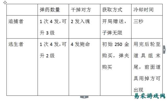 从道具上来说,包含钥匙箱和变形道具、陷阱。一张地图共有4把钥匙,拿到其中3把即可打开逃生门,开启钥匙箱需要校对轮盘,而开启钥匙箱的人越多,开启速度越快,同时队友死亡以后也可以加快队友开箱速度。