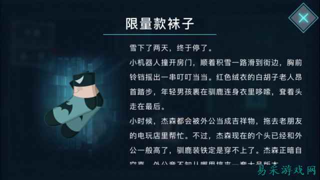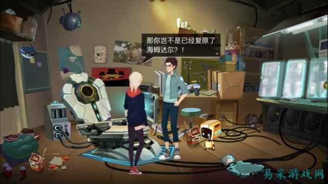 是否让你联想到了刺客信条里的Animus? 这个故事并不是先声夺人的那一种,换言之,它非常慢热。在序章部分,本该新鲜劲满载的我甚至觉得有一丝无聊,如果不是为了写评测,也许我就被自然劝退了。然而当故事涉及的人物和信息越来越多,一个引人入胜的故事慢慢浮出水面,需要跟随主角一步步去抽丝剥茧,才能看清整个事件的真相。从第三章开始,故事才真正的渐入佳境,故事的沉浸感终于达到了顶峰。 故事的叙事风格,无论是从人设,还是行文特色、配音特点,都像是在读一本少年向的科幻网文,好在其间渗透的一些哲学思考和人物情感,甚至还有一些让人忍俊不禁的小包袱,让故事不至于过于低龄和轻飘,按照团队自己的说法,这个故事“是有情绪的”。