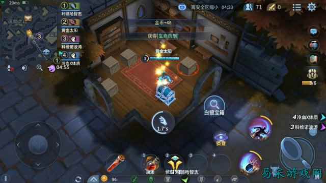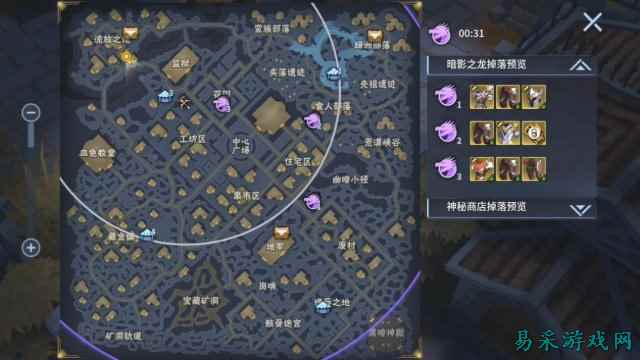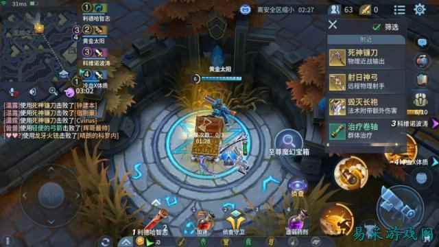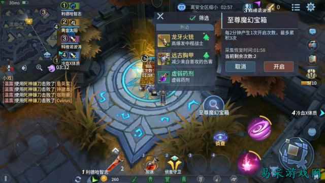 其中,宝箱和商人分多种类型,宝箱包括木质、白银、紫金、幸运宝箱和至尊魔幻宝箱,前两者随便开启,紫金宝箱则需要紫金钥匙,幸运宝箱可遇而不可求,至尊魔幻宝箱则是每3分钟存储一次开启名额,最多存储3次。至尊宝箱一旦开启,必有橙装爆出。商人则分神秘商店、随机商店、地精商店、黑市等等,购买装备需要金币,可以通过搜集、打野获得。