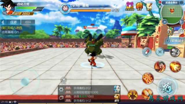 经典的天下第一武道会,龙珠开始人气爆棚的拐点 这两种玩法又以主角贯穿,我们的小悟空(在非故事主线部分还可以切换成其他角色)可以通过时空穿越自由穿梭于两者之间,谋求成长。轻松的自动寻路系统和不需要刻意刷刷刷就可以通关的数值设计(尤其是中前期),能保证快速升级的快感,和龙珠动漫的爽快气质一脉相承。