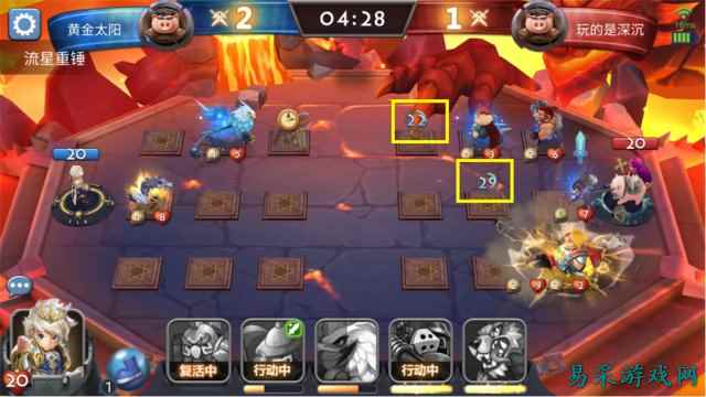 双方主帅不能移动,但可以通过击杀对方伙伴获得击杀点数,从而释放技能。解锁英雄技能,需要戴上相应的装备激活技能,四个英雄皆有其独特技能。比如亚瑟就是复活伙伴,回复生命,以及加持护盾。