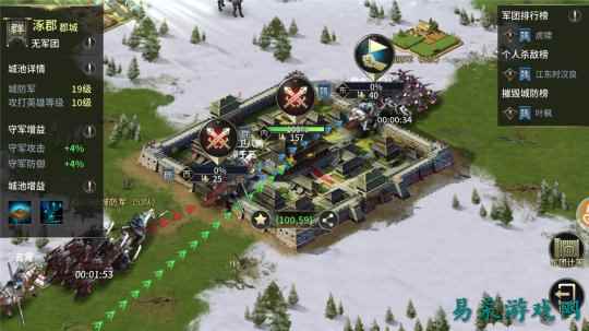 城池可以为玩家带来各种各样的加成,比如提升采集资源速度、加快建筑建造速度等等。要知道在这类国战游戏中,谁发展建设的速度越快,谁就会更显拥有强大的实力击败国战对手。
