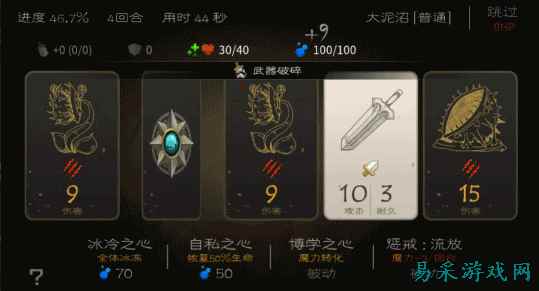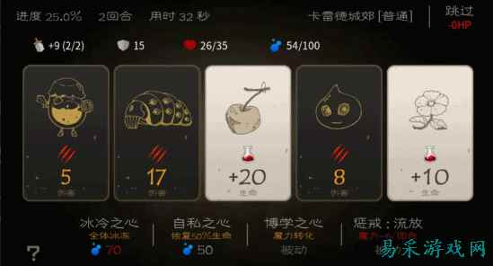 虽然每层只有5张卡牌,但是游戏采用了roguelike式的随机规则,玩家每一次进入关卡都会遇到完全不同的卡牌,所以说游戏也并没有太多的攻略可言,全凭玩家的正确选择才能够顺利过关。虽说游戏是全随机性,但是游戏中每一个关卡还是拥有着不同的元素,如不同数值的怪物以及各式各样的陷阱等,使得游戏的每一个关卡相当具有挑战性。