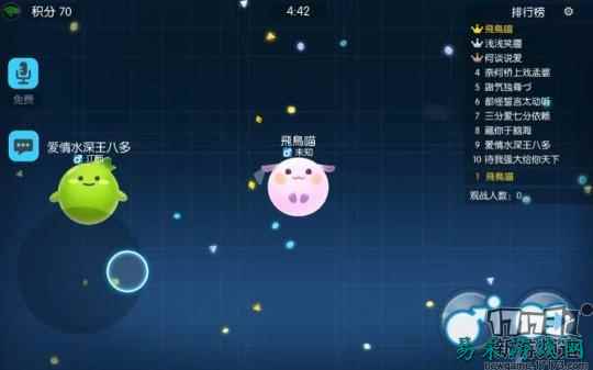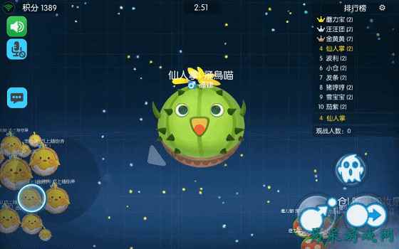 游戏在基础的单人玩法上更是增加了2人组队以及5人组队的战斗模式,在该模式下,同组玩家将被分在一起,玩家能够共同围剿敌人,并且还能够通过射出孢子或撞击刺球分裂给队友喂孢子使其快速变大,在组队模式下,计算队伍的共同得分,只有默契的配合才能够顺利的赢得游戏的胜利。