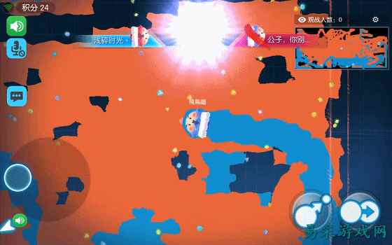 虽然在操作上没有太过复杂的成分,不过在游戏的道具大乱斗中,还是加入了一项道具功能,一旦有玩家捡到了对应的道具,那么整场的玩家都将获得对应的道具技能,从隐身偷袭他人到射出子弹减小对方的体积、闪电强制分裂等,都使得游戏在传统的大球吃小球玩法上有了更进一步的突破。