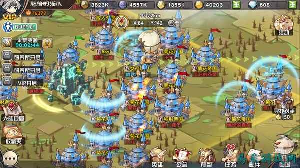 《王牌军团》开篇的搞笑剧情很有意思,神经病一样的公主和精神病一样的手下,还有一个傻了吧唧的指挥官(主角),完美地开始了一场不知是真是假的帝国争夺之旅。(文/黄金太阳) 王牌军团主界面采用日系画风,UI整洁利索,建筑人物动态活泼,使整个游戏感觉充满了活力。而英雄、战斗场景、大地图则采用Q萌画风,尤其是战斗场景憨态十足,配合上略带魔性的战斗音乐也算是不错的享受。 游戏本身带有配音,但是除了在开头剧情配音较多以外,其他时刻只有在进入相关建筑才能有配音,虽然一口大东北话说的是很流利,不过听多了也就没什么了。