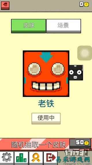 在起始楼层跳跃到按钮上,获得彩虹小尾巴 在游戏开始阶段,玩家可以挑选不同样式的方块人脸作为玩家在游戏中的自身形象。在游戏中获得的金币可用于玩家更换皮肤。玩家也可以挑选不同的场景,不同的场景有不同的上升路径,难度也不尽相同。