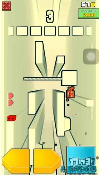 《你行你上》靠点击屏幕下方的三个按钮来进行操作,黄色为左右按钮,可以调控方块人脸的跳跃位置和方向,蓝色为跳跃键,按下可以使得方块人脸进行跳跃。玩家可操作方块人脸进行跳跃从而登上更高的楼层,在不断跳跃的时候,方块人脸可以沿着墙体攀爬。