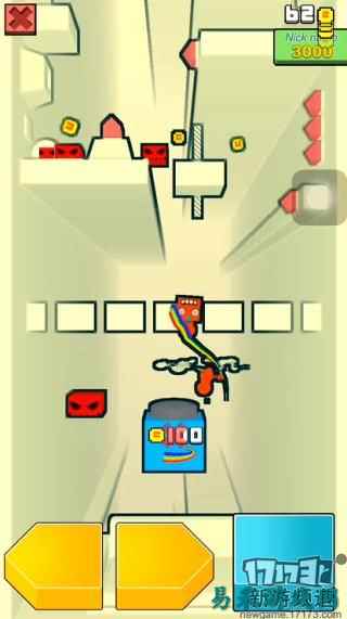 在攀爬过程中,玩家要注意小怪,不慎碰到小怪,游戏结束。但在跳跃过程中碰到小怪,小怪会被打败,玩家还能获得一定的金币数。在游戏中玩家还会遇见各种障碍,如倒刺和移动的墙体等。其中倒刺是可伸缩的,玩家要小心躲避,或者依靠时间差迅速通过,不然被伸出的倒刺触碰到,游戏就会结束,之前所有的努力都会功亏一篑啦!移动的墙体是可以顺着可看见的伸缩方向移动的,玩家要多加注意,防止因为墙体的移动而使得人脸方块掉落或者碰到小怪。