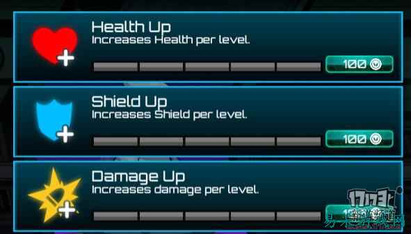 游戏过程中消灭敌人会掉落硬币,可以用于升级外星人或解锁新的外星人,解锁外星人的花费会不断上升。升级外星人的能力相当重要,初始状态的外星人血量、护盾、攻击力等属性都不高,扛不住几下子弹的伤害,花几百硬币升级属性之后,敌人的威胁就会减小不少,可回复的护盾也会让你在各种情况下有更强的生存能力。