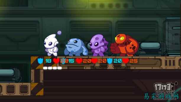 外星人的种类比较丰富,一共有十二个,硬币可以解锁其中六个。每个外星人都有独特的战斗方式,风格区别明显。比如初始的外星人使用能发射回收造成两次伤害的子弹;体形较大的红色外星人攻击方式为近战,挥拳能反弹子弹,血量较多,二段跳时自身还有爆炸伤害,还有一些没有护盾,使用跟踪子弹或激光等,专注输出的外星人。每个外星人可通过升级获得的属性强化也是不同的。 游戏小结: 《外星人特工》有清新的卡通风格画面,按键简单,玩家不需要操作攻击,但关卡相当有难度,外星人种类多样,能召唤出队友的玩法很有意思。同时游戏还有一些roguelike特性,连续过关时,之前在关卡内捡到的属性强化和召唤的队友是可以不断积累的,但如果过关失败,即使花费硬币在检查点重生,这些东西也会丢失,不能继承,所以在挑战boss之前可以用简单的关卡得到一些强化。总之推荐对自己操作水平有信心的玩家可以尝试。 |