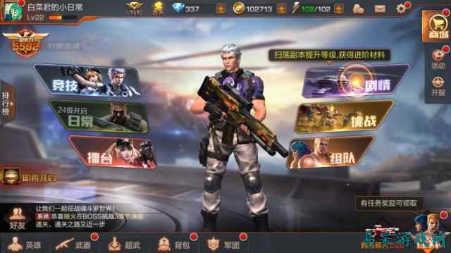 不同的英雄拥有不同的技能,且特色鲜明 而武器的设定,则提供给了我们不同的战斗方式。比如步枪与散弹枪的弹药发射方式本就不同;在除了有经典飞行子弹的存在以外,我们可以在游戏中任意切换两种不同的武器进行战斗。并且武器的养成也会解锁更多的战斗“姿势”,比如A6突击步枪可以解锁近身匕首功能(敌人靠近时自动近战造成大量伤害),让战斗更加得心应手。并且,所有英雄以及武器技能的养成材料,均可通过游戏提供的丰富玩法(比如挑战玩法)获得哦。