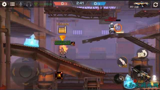 在英雄战场中,玩家1V1互撕 在26级后,我们还能解锁3V3的占领据点玩法;3人协作与敌方周旋,武器的选取以及英雄技能的选择都是团队成员应该相互沟通的事情;前有单人1V1的纯个人实力证明战,后又有追求团队合作以及沟通的占领据点玩法,从整体上来看,游戏的PVP玩法覆盖还是相当全面的,兼顾了玩家对个人与团体的双向竞技需求。 除此之外,一些娱乐玩法也是一个值得关注的游戏点,比如低重力的太空大乱斗以及自带弹射特效的疯狂榴弹炮。如果我们厌倦了常规的弹幕直线互射,来一发更多可能的可以弹射的疯狂榴弹炮怎么样?子弹会弹射,落地点会有范围伤害,这样的新奇设定相信很多小伙伴还是十分愿意去体验一番的。而这种趣味与竞技性兼有的娱乐玩法模式,也是十分值得推荐的。