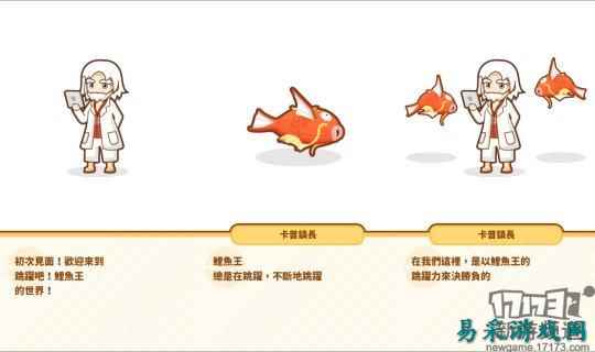 游戏故事发生在一个只爱鲤鱼王的小镇上,镇上的居民都以鲤鱼王的跳跃力来角逐鲤鱼王能力的高低。然鲤鱼王跳跃能力日渐低微,正如任天堂《鲤鱼王之歌》里描述的那样尴尬,因此镇长特此聘请了培育家(玩家)以称霸八个鲤鱼王联盟为目标去培育鲤鱼王,以此壮哉我大鲤鱼王们!