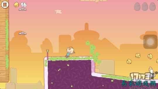 当然了这里老大爷还是有一些技巧要教给大家,首先电子鸡是可以被消灭的,一切资本主义的妖魔鬼怪都是纸老虎,玩家只需要控制小男孩从上起跳,踩中电子鸡即可。