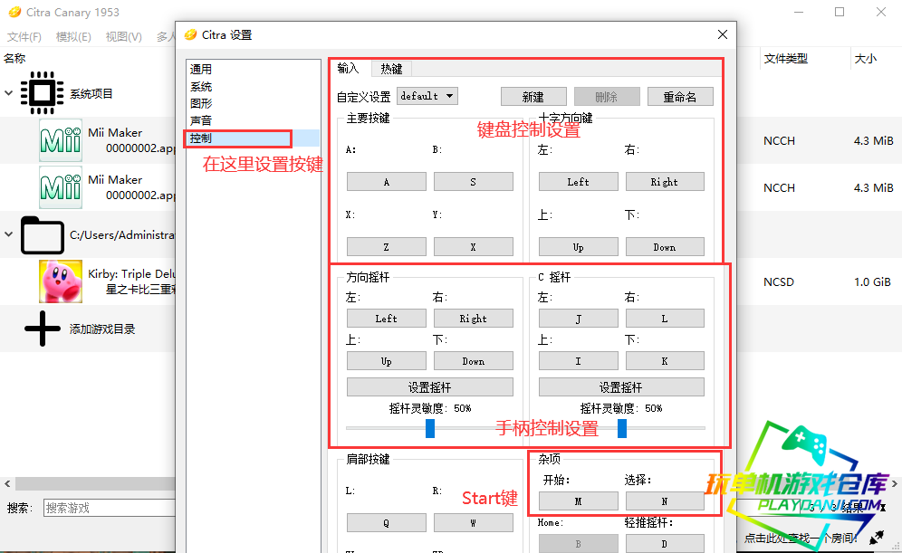 默认是键盘输入,基础按键是A(确定) S(取消) Z X 和M(Star键) 以及方向键