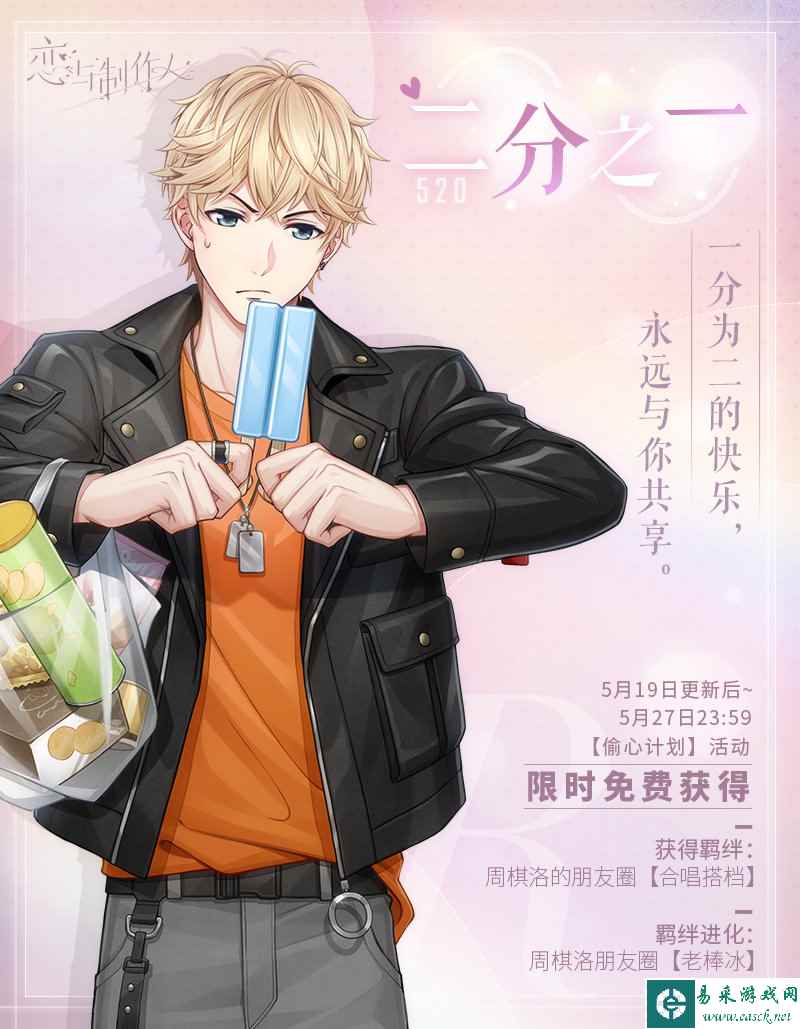 恋与制作人最近上线了520偷心计划活动,很多小伙伴都很想知道其中的奖励周棋洛二分之一怎么样,今天小编给大家带来了《恋与制作人》周棋洛二分之一介绍。感兴趣的小伙伴一起来看看吧。
