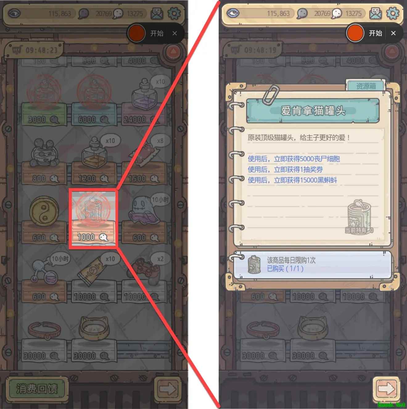 最强蜗牛爱肯拿猫罐头在哪里买?我们可以在自动贩卖机当中购买这个道具,使用后还可以获得15000黑蝌蚪、5000活尸细胞和1张抽奖券。下面小编就给大家带来最强蜗牛爱肯拿猫罐头获取方法的内容,一起来看看吧。