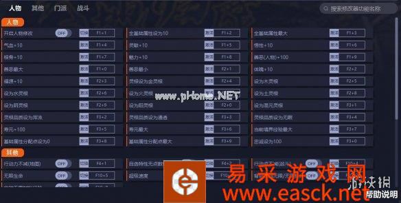 3.开启修改器各主初始项再使用各子修改项[无主初始项则不用开启][主初始项:如开启...修改]。