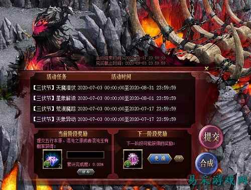 三伏节的第一阶段于7月3日开启,有天魔潜伏、星象解读、天象异动和荒漠魔踪四个活动。首先是天魔潜伏,这个任务中的boss“域外天魔”为隐形NPC,玩家只能通过任务列表查看当前所在地图隐藏的“域外天魔”数量,但不能确定其具体位置。只有在足够靠近天魔的时候,它才会从隐藏状态中显现出来。总体来说,这个任务的打怪难度不大,但搜索起来比较麻烦。因此,建议各位道友前往东海渔村或无名小镇、北海沙滩等地图不大且没有很多障碍物的地方进行搜索。
