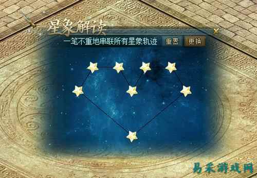 第二个就是星象解读任务。来到中州的“域外天魔”们,不仅隐藏在这个大陆的各个角落,还有一部分选择附身在天墉城居民身上。玩家打开时辰运势就会摇出解读星象任务,解读星象的方式就是,一笔不重地串联所有星象轨迹,完成后就能够获得天魔线索,并前往指定NPC处解救附身的天墉城居民。