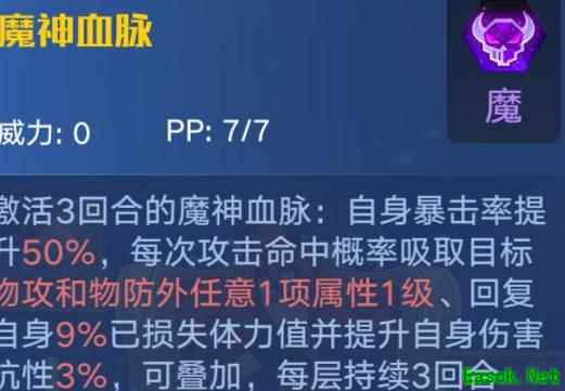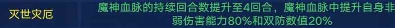 二技能可激发魔神血脉,持续四回合内暴击率提升50%。每次技能命中目标时,可吸收其除物攻与物防外的各项属性一级,同时恢复自身生命并降低所受伤害。吸收效果即削弱目标属性并强化自身对应属性。若技能同时命中三个目标,则三种增益效果各触发三次以上。凭借专属特性,魔神血脉的持续时间被延长至四回合,进一步增强持续作战能力。由于该角色主修魔攻,且一技能已提供物防加成,故无需重复提升物防属性。