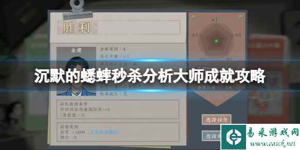 《沉默的蟋蟀》秒杀分析大师沉默的蟋蟀游戏里有个秒杀分析大师的成就需要玩家在竞猜至少三次猜对秒杀,具体达成方法可以看...