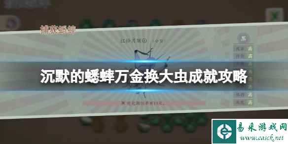 《沉默的蟋蟀》万金换大虫成就攻略沉默的蟋蟀游戏里有个万金换大虫的成就,需要玩家高价买到一个对应价位的蟋蟀,那么要满足什么条...