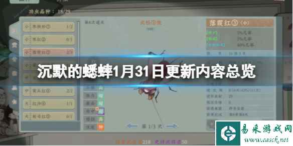 《沉默的蟋蟀》1月31日更新内容总览沉默的蟋蟀游戏除了新上线的异虫扩展包外,游戏本体也进行了新补丁的更新,主要新增了部分新功能...
