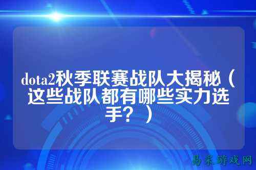 dota2秋季联赛战队大揭秘(这些战队都有哪些实力选手?)