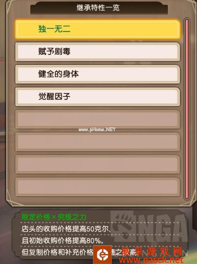 选特性的时候只需要选金色光芒就行了。其他特性尽量不要加,因为特性也算道具评价,会增加复制价格的,亲测和减价/加价词条配合不如单选金色光芒。