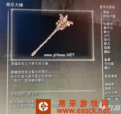 野兽祭祀给一个大锤和一个升级版兽爪