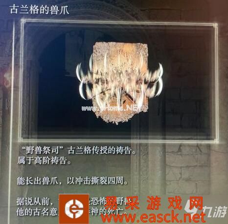 交5个死根给盖利德右上角野兽神殿里的npc就可以获得兽爪,如果不是一次性交齐,那个npc可能会发疯,打一顿会向你求饶,放过即可。