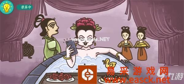 3、点击其眼睛可加强WIFI信号,此时妃子拿出手机边玩边泡澡;