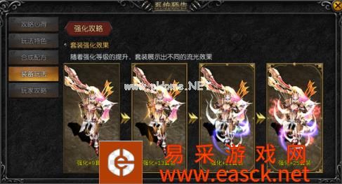 装备玩法页面详细解说了大家日常用的最多的强化和叠加系统,以及大家都追求的套装属性。