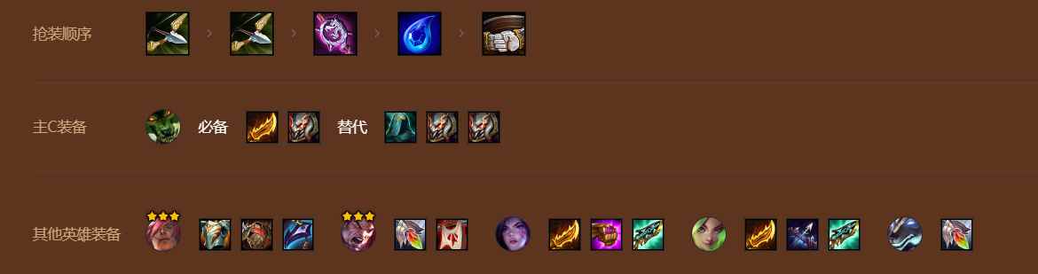 装备狼人和瑟提必满,剩余物理输出给上泽丽,法术输出给上卡莎。