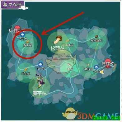 《小森生活》香蕉位置介绍【位置介绍】 香蕉是暮夕深林地图中的珍贵资源,玩家可以前往暮夕深林来寻找该资源进行采集