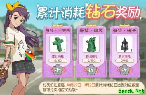 4、参与10月27日更新后的【累积消耗钻石活动】,即可在活动页面兑换哥特主题家具:哥特·十字架,哥特·幽灵以及哥特·碑亭。 以上就是《小森生活》哥特主题家具获取方法的全部内容了,更多手游攻略请关注手游网! 本文内容来源于互联网,如有侵权请联系删除。 |